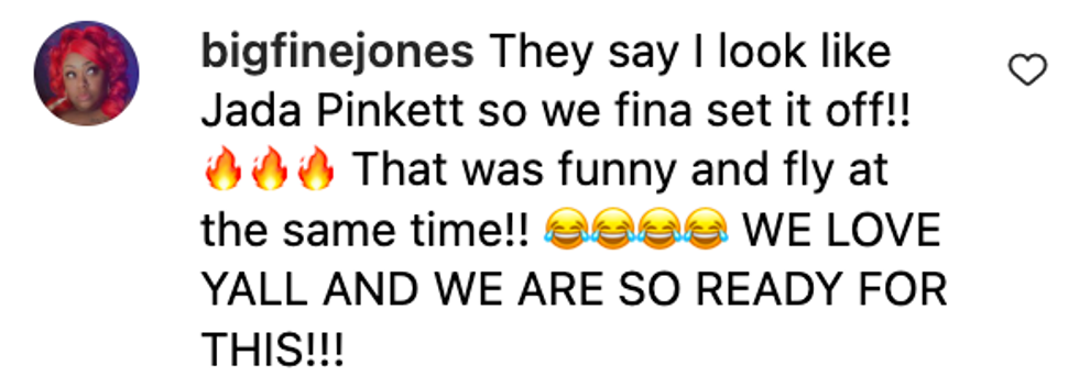 "They say I look like Jada Pinkett [Smith], so we're about to set it off."