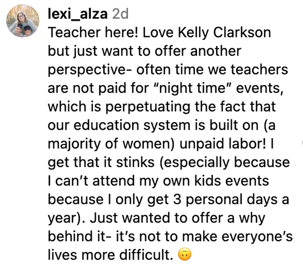 Clarkson's honest opinion on this issue was met with an evenly divided response from the podcast's Instagram followers, particularly those who were teachers and/or parents: