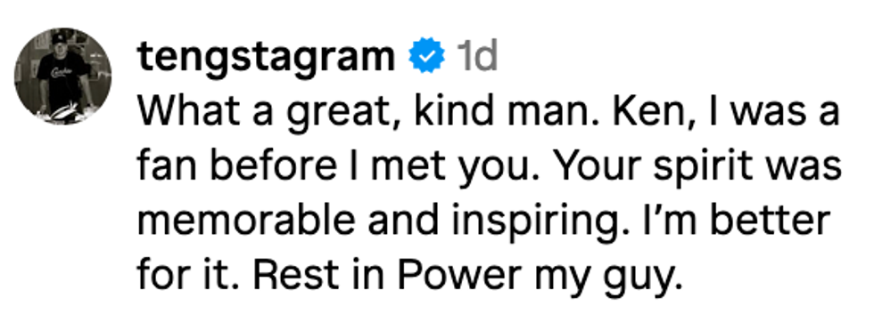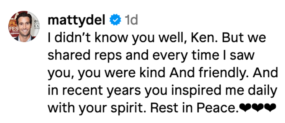 "Ken was an inspirational work of art to all the hearts he touched.”