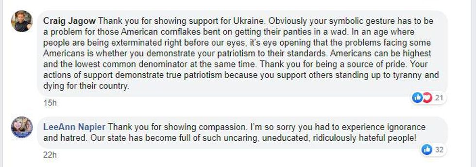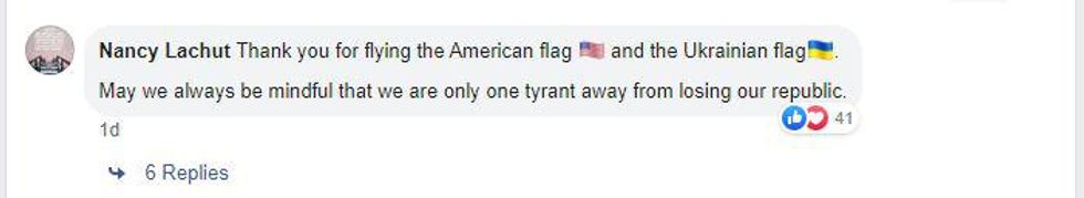 "Thank you for flying the American flag and the Ukrainian flag."