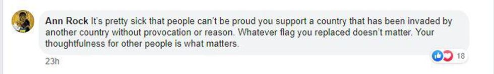 "It's pretty sick that people can't be proud you support a country that has been invaded by another country without provocation or reason."