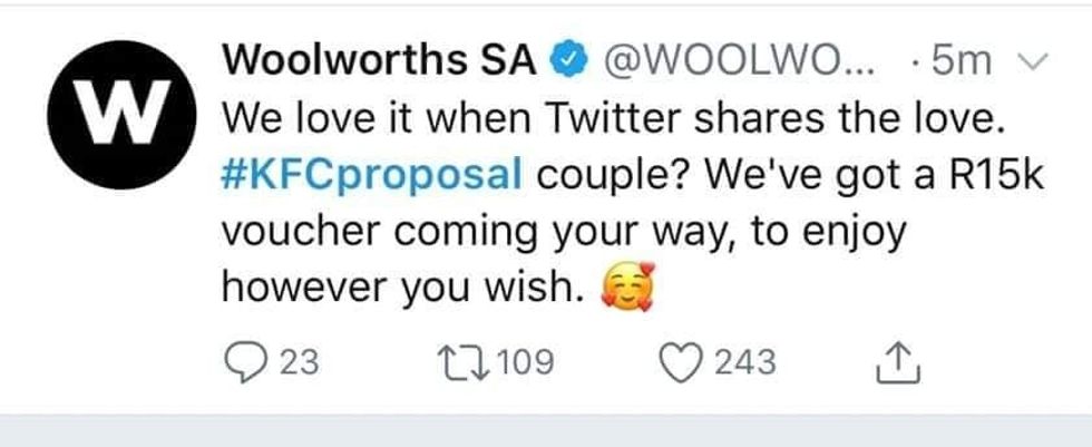 Maybe it pays to propose in a KFC.