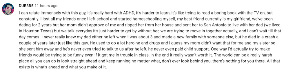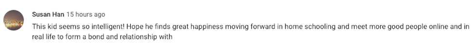 I wish I could VR chat and meet people like him. Kid seems like a genuinely nice dude. It really sucks he gets treated poorly or he feels bummed out about things because he's really quite eloquent for a 15-year-old and really seems solid. I hope things turn around for him.