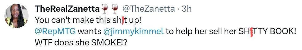 "Marjorie Taylor Greene's book is such a bomb, I might have to report it to the Capitol Police."