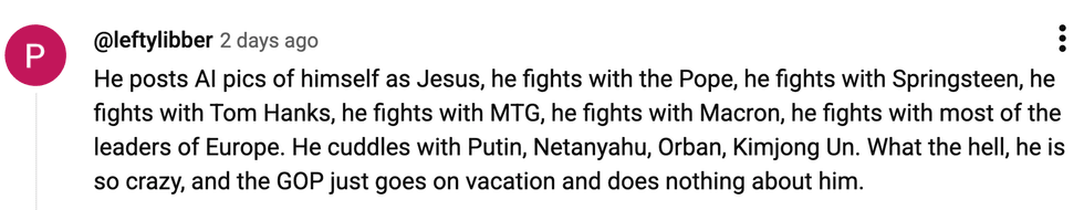 Trump later took to Truth Social in an attempt to discredit the Pope, saying he doesn't "want a Pope who thinks it’s OK for Iran to have a Nuclear Weapon." Among other things, Trump said the Pope should "stop catering to the Radical Left, and focus on being a Great Pope, not a Politician."