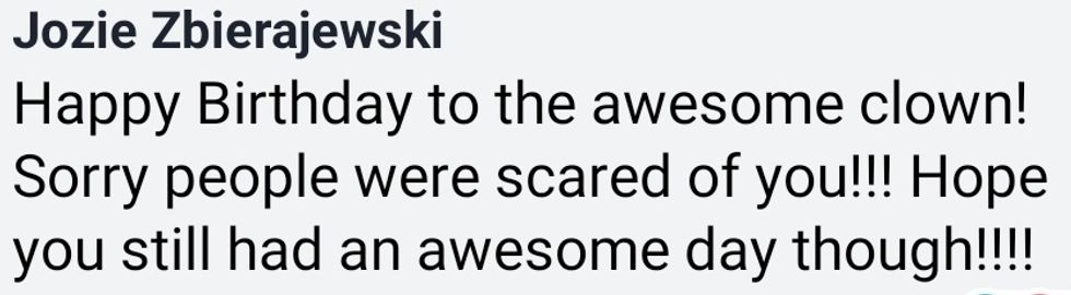 Unfortunately, the man's choice of celebration resulted in a pretty significant misunderstanding, as it involved dressing as a clown and handing out candy to people.