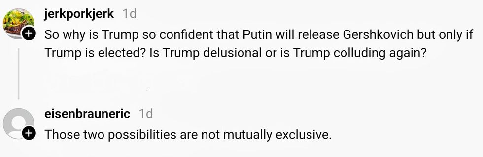 "Trump has called journalists 'enemies of the people' and pledged to imprison reporters whose coverage he doesn't like – not all that dissimilar to what's happening right now to Evan Gershkovich in Russia."