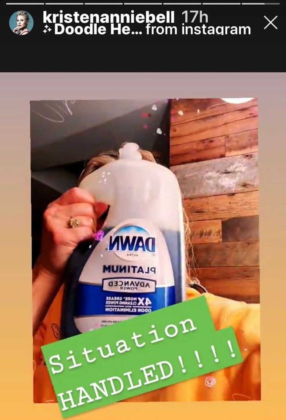 "My daughter just washed her hair with vaseline.....and I can't get it out...." a very stressed out Kristen Bell told her Instagram followers on her story.