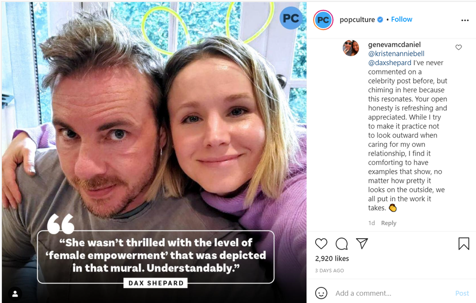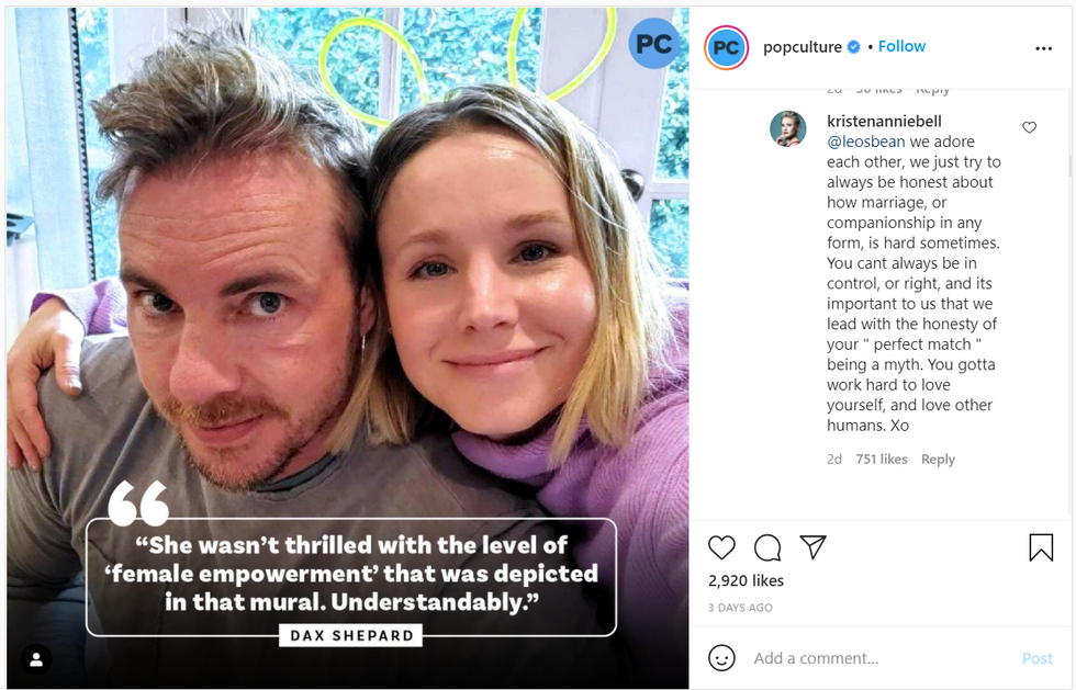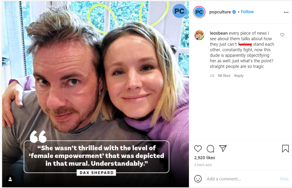 Recently, it meant Kristin Bell offering some clarification to a commenter who believes the couple "can't f**cking stand each other."