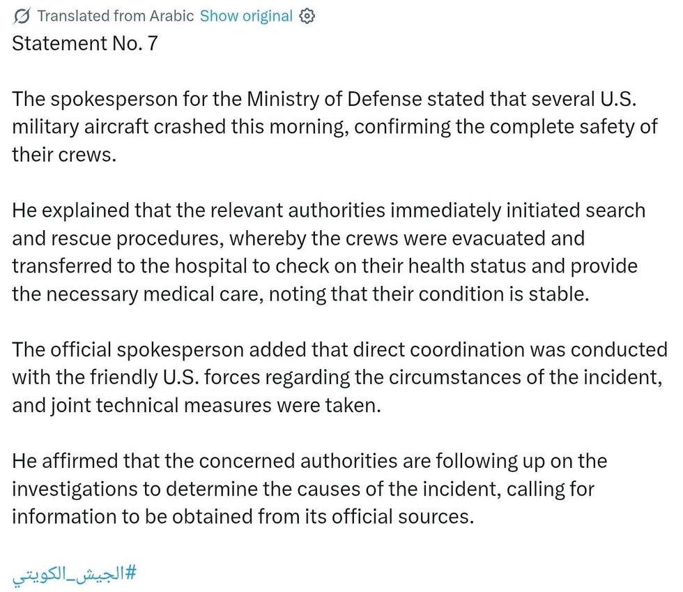 "Kuwait has acknowledged this incident, and we are grateful for the efforts of the Kuwaiti defense forces and their support in this ongoing operation."