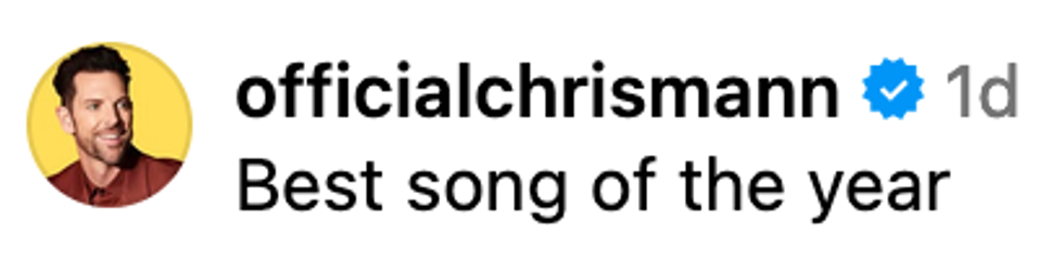 "Thank you for listening and dancing and making your art along with mine. I’m so grateful. It’s 2025 and I have a number one song. It’s pretty wild."