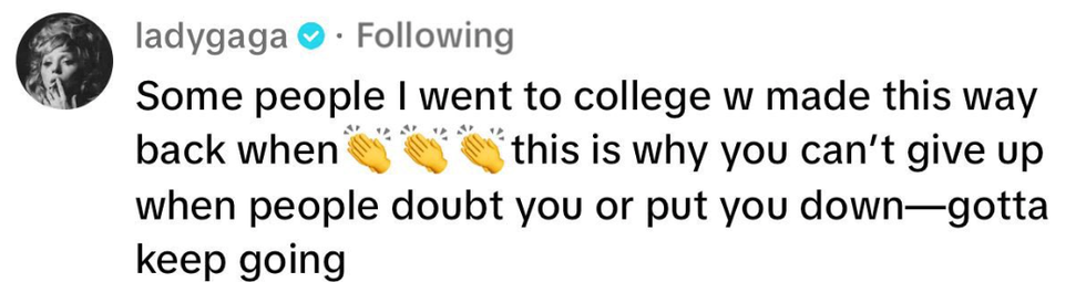 Lady Gaga shared an uplifting message on TikTok after a Facebook group named "Stefani Germanotta, you will never be famous" resurfaced.