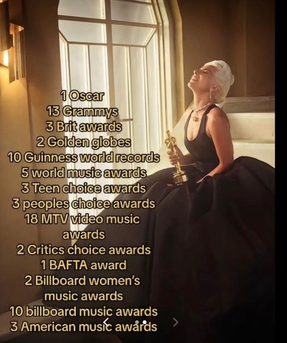 The TikTok created by @instxdk24ds showed a screenshot of the Facebook group's homepage followed by a photo of Lady Gaga with her Academy award listing many, but not all, of her accolades to date: