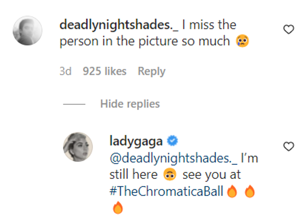 One comment evidently stood out enough that Gaga felt the need to respond.