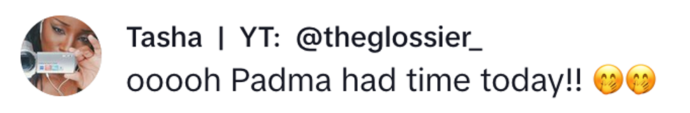 The creator, host, and executive producer of the docuseries Taste the Nation with Padma Lakshmi, admitted she doesn't spend much time on TikTok but had to respond to the "really annoying video" that was brought to her attention.