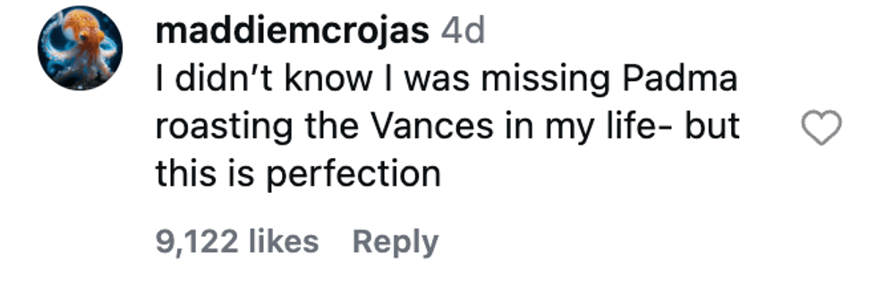 Padma Lakshmi served up a top-tier helping of judgment for Vice President JD Vance’s questionable meal choice for his wife, Usha Vance.