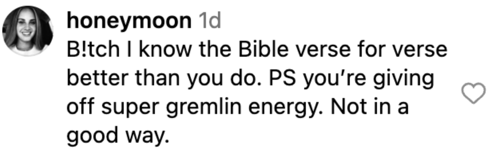 The singer, a Catholic-raised churchgoer, had a few words for the Christian influencer, commenting: