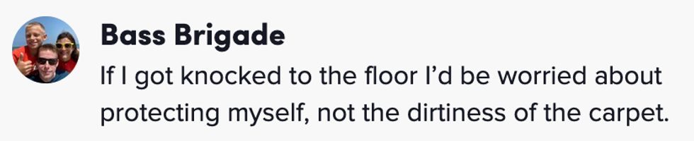 He comically adjusted his staging of her recollection of being on the floor when Heard said, "I was just sitting there on the carpet, looking at this dirty carpet and wondering how I wound up on this carpet."