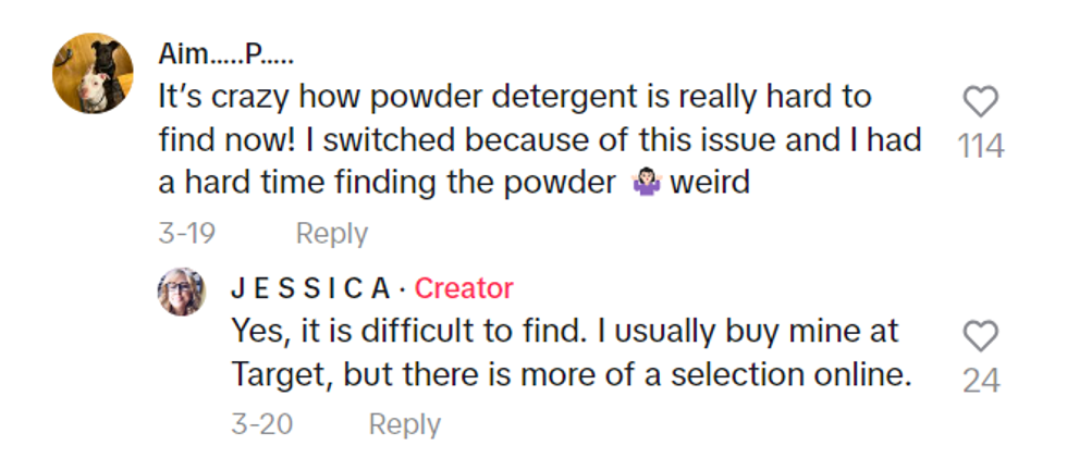 After watching her son do his laundry, it clicked for Jess, who noticed that her son had put an entire cap's worth of laundry detergent into the machine, as well as the cap itself to wash it out, which is a common practice on TikTok.