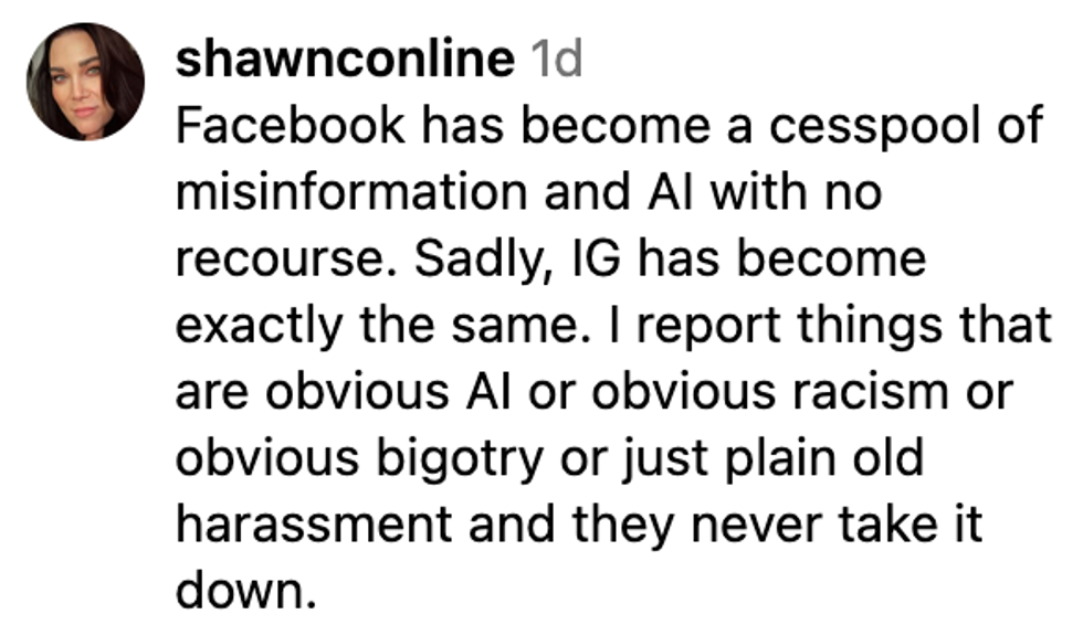 People online took Curtis's posts as an opportunity to point out how frankly terrible Meta is at content moderation, and to express their worries about AI.