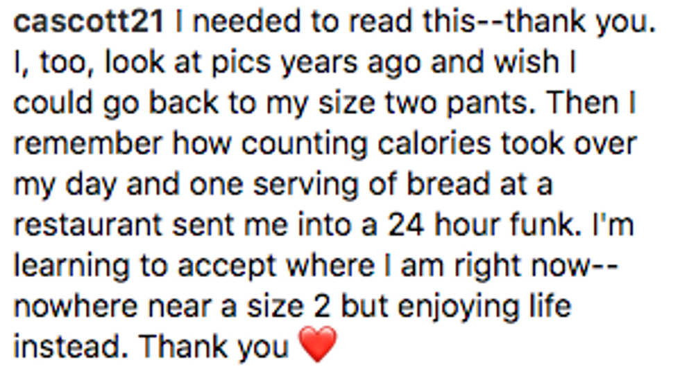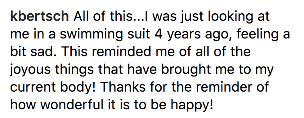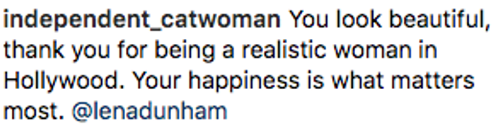 Despite what tabloids say about body image issues, Dunham's post is an inspirational reminder that the happiness you feel from within is the kind of positivity that tips the scale.
