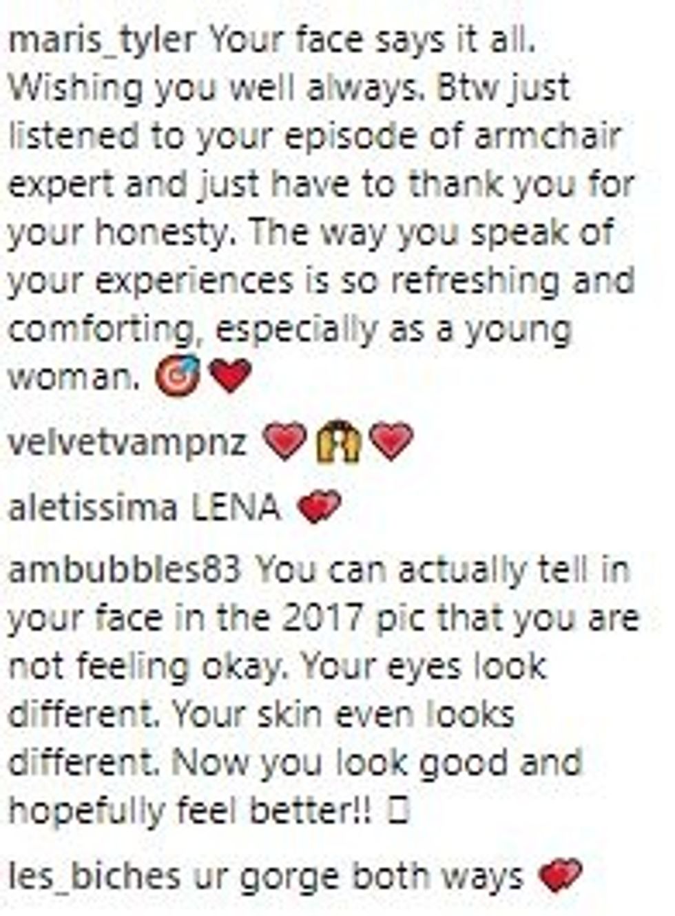 In the photo side-by-side, Dunham shows a photo from 2017 when the writer says she was extremely ill, and compares that to the day after Thanksgiving 2018 where she feel much healthier.