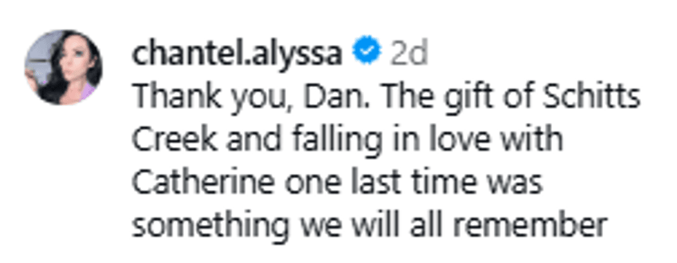 But to Dan Levy, she was more than a costar, onscreen mom, or even family friend; she was more like an aunt, having worked with his father, Eugene Levy, for decades and meeting Dan when he was still a baby.