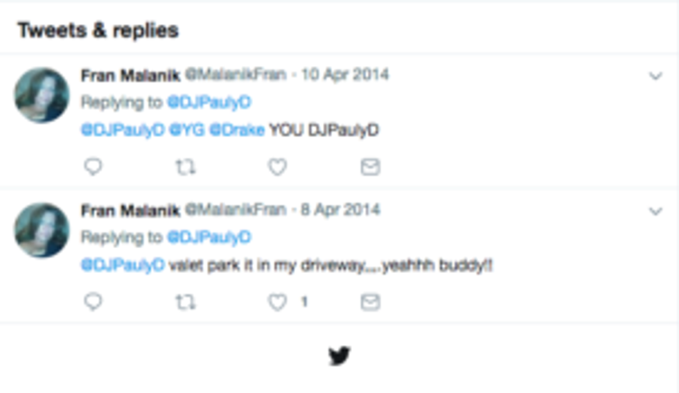 Of the little social media presence that Second Nexus could discover is a Twitter account that has not been active since April 2014. Both of Malanik's tweets are aimed at Jersey Shore star, Pauly D.