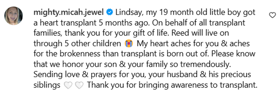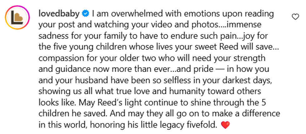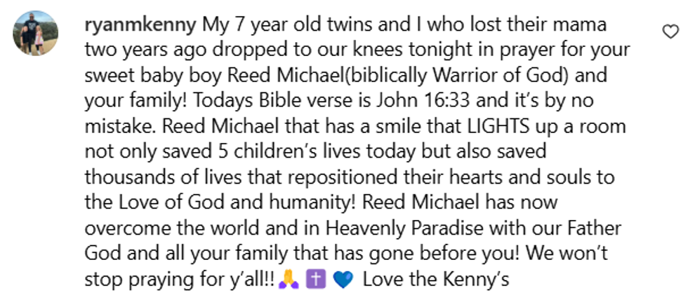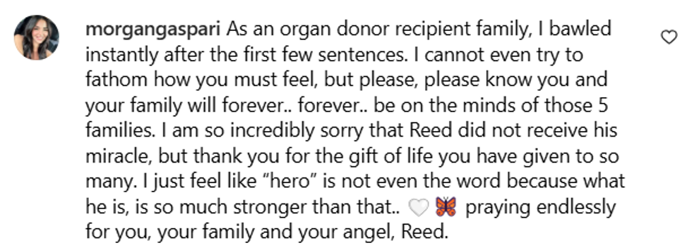"The worst day of our lives became the best day of someone else’s and for that I will forever be grateful for our little hero baby. You’re someone’s miracle, Reed Michael. 5 little kids miracle to be exact."
