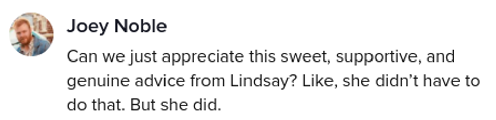Maybe not quite as heartfelt, but Lindsay nonetheless.