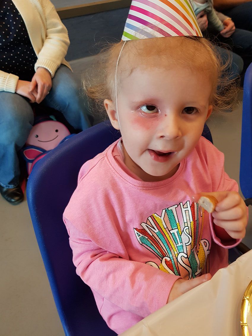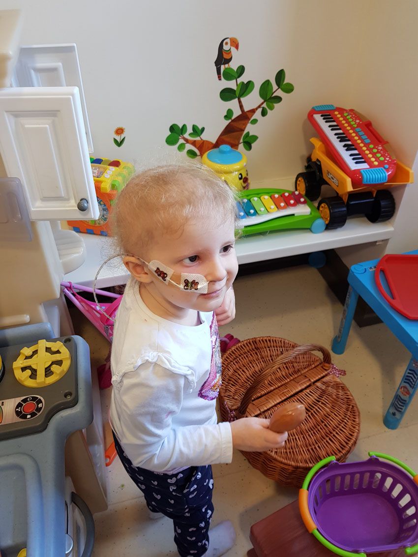 Two weeks later the biopsy results confirmed the retinoblastoma had been present in her optic nerve and she would need chemotherapy to remove the last traces of the cancer and to help prevent it reoccurring – something the family had been told to expect.