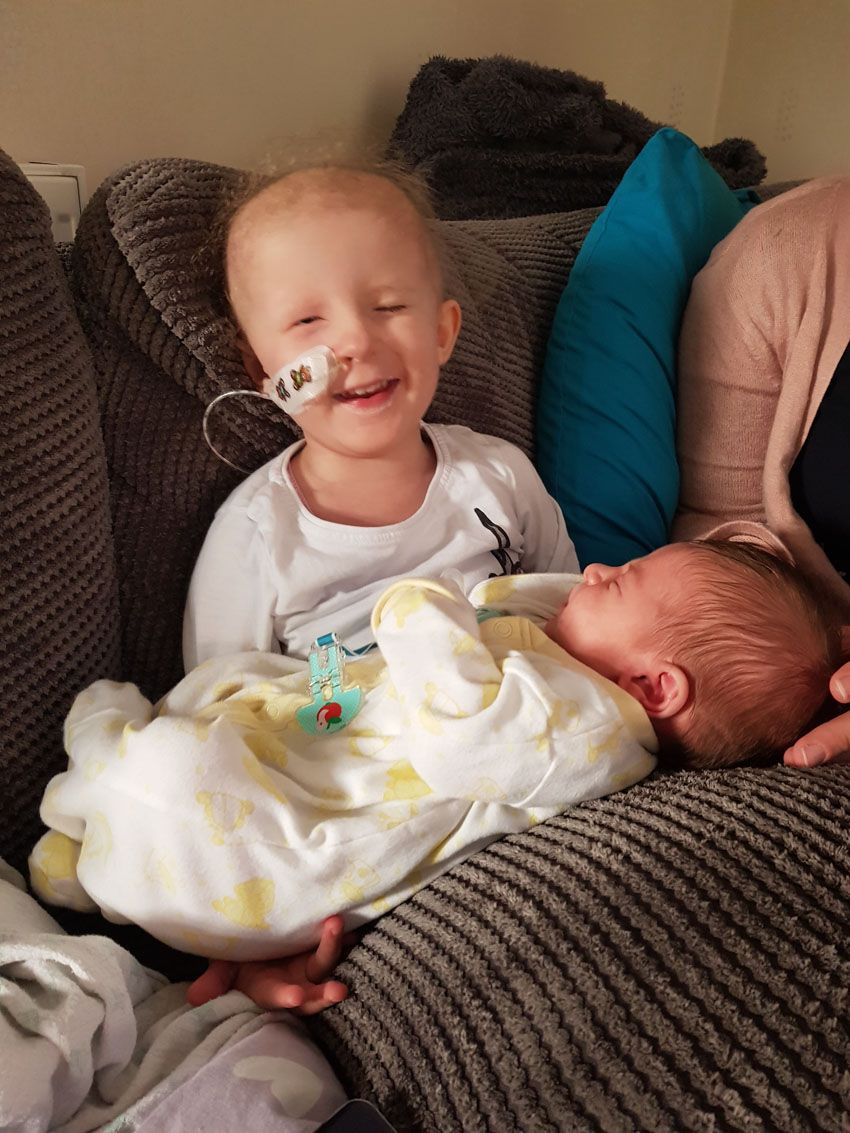“It's hard telling a three-year-old not to get too close as she was very excited about being a big sister. We couldn't let her kiss or cuddle him. It was heartbreaking but we had to make sure they were both protected from infection."