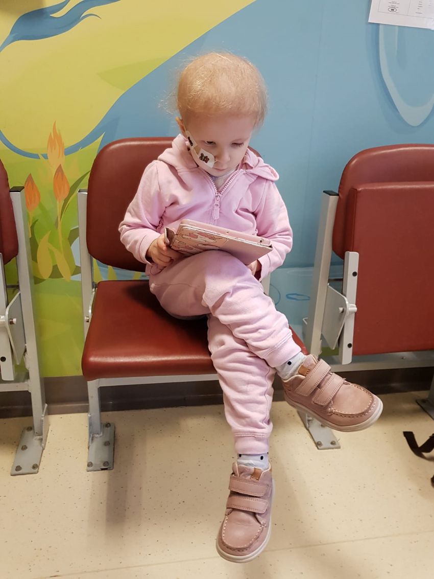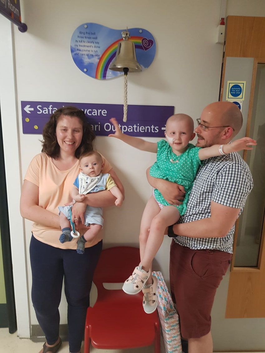 Back in the UK in March, Olivia began her final treatment – four doses of chemotherapy over four months, which required overnight stays in Great Ormond Street Hospital.