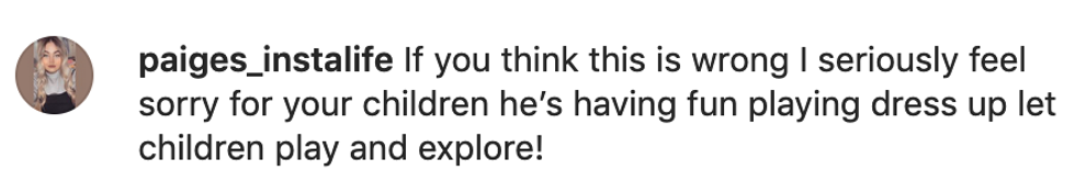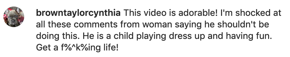 One individual suggested the boy playing dress-up would have damaging effects in the long run.
