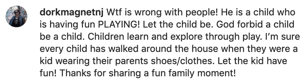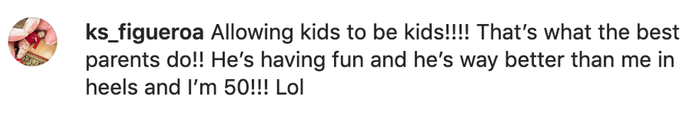 Reactions were mostly positive, with one commenting, "This is me in heels and I'm 30🤦🏽♀️🤣" and another writing, "thank you for letting kids be KIDS!"