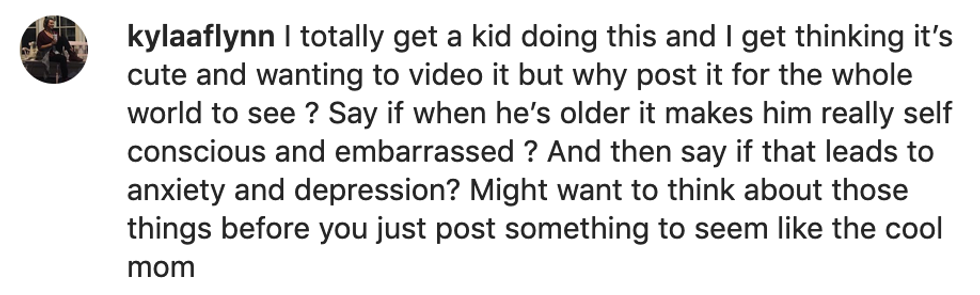 "I totally get a kid doing this and I get thinking it’s cute and wanting to video it but why post it for the whole world to see?"