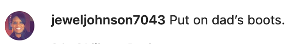 One user named Jewel Johnson–who claims she's "a People Person-Period!" and she loves "God, my family and people genuinely"–suggested Grayson needs to "put on dad's boots."