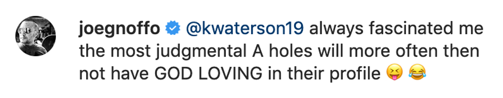 "Always fascinated me the most judgmental A holes will more often then not have GOD LOVING in their profile 😝 😂"