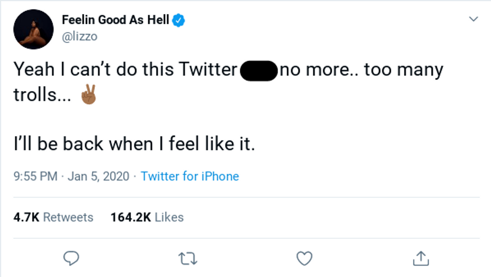 Let's let Lizzo taking a break from Twitter be a reminder to all of us: if there's too much hate clouding our vision, we have every right to step away and find clarity again. Only then can we be our most successful selves.