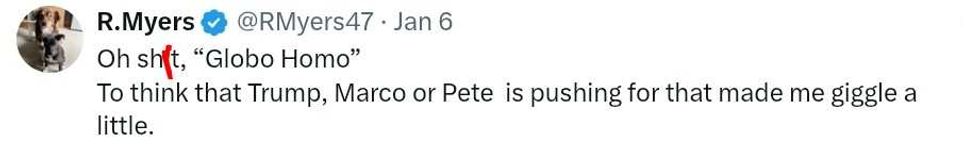 "Globo" is another term for globalist, which is used by White supremacists and far-right movements to promote the conspiracy theory that Jewish people have formed a shadowy elite that controls world events, finance, and media. "Homo" refers to Christian nationalists claims that the LGBTQ+ community have a monolithic agenda to destroy "traditional" values.