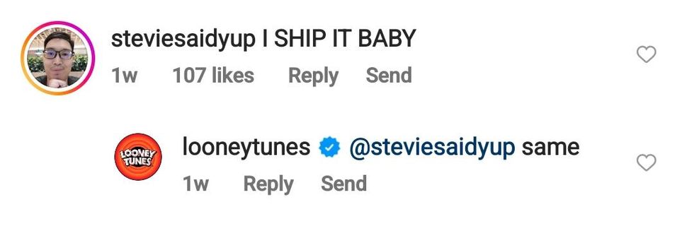 Looney Tunes dropped a quick video on their Instagram detailing some adorable interactions between the two characters—moments like dances, laughs, flirtatious glances.
