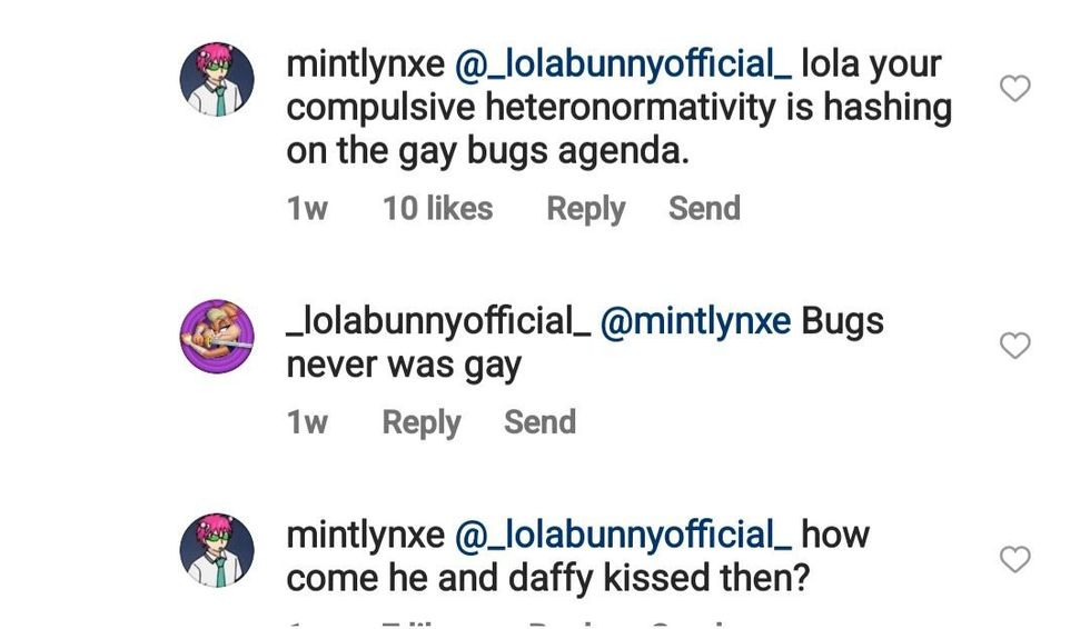 So yeah, Bugs and Daffy tried to have an official coming out moment and it got crashed by someone pretending to be Bugs' toxic, obsessive, homophobic ex.