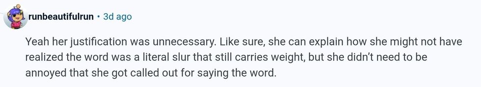 "I was apologetic and I educated, not only myself on the true meaning and history of the word, but also anyone around me.
