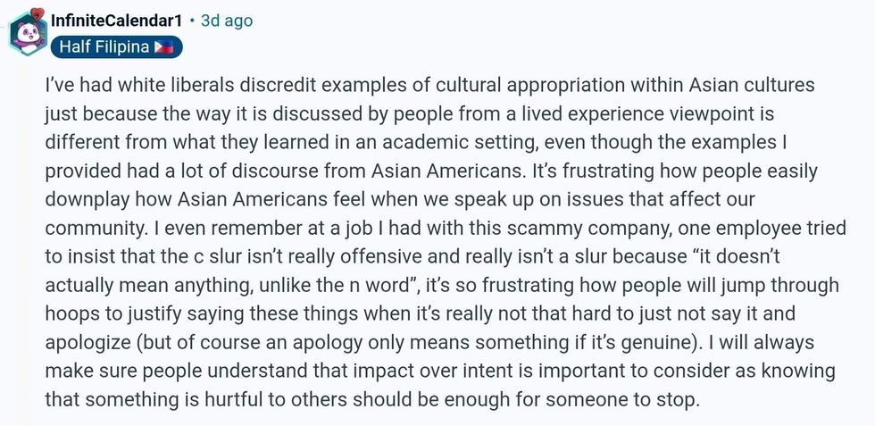 In the r/AsianAmerican subReddit, members discussed the casual acceptance or downplaying of slurs against Asians.