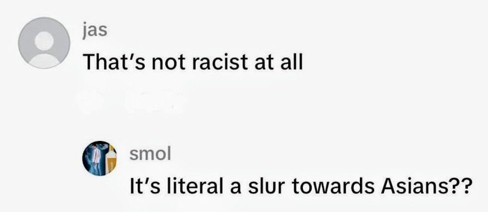 The slur is a racist take on "Chinese," but is often directed at southeast Asians in general or used to describe anything perceived as Asian.