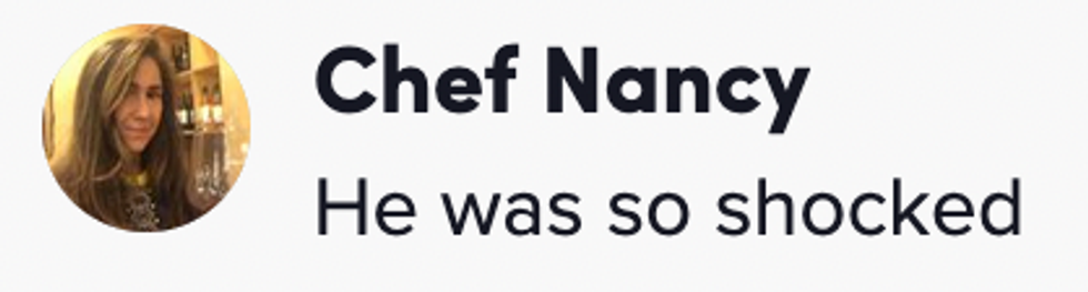 After immediately trying to stop Gansky by saying "No-no-no it's soap!" he then froze in wide-eyed horror, hands to his mouth, as Gansky and her friend began to laugh. Gansky then spit the soap out while the employee cackled and got her a paper bag to discard it in.