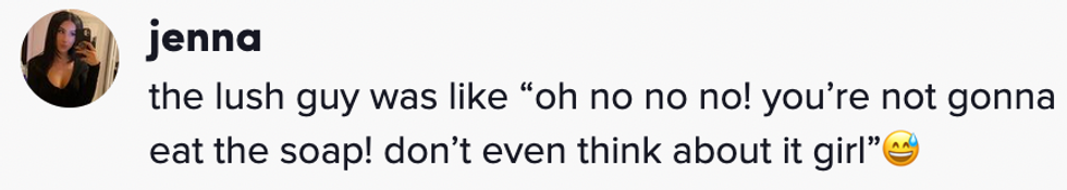 To be fair, a lot of things at Lush do resemble food--and some of its products are even shaped like the foods they're meant to smell like. But as several other TikTokers pointed out in the comments, one unavoidable question remains.