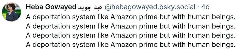 an incredibly dark thought i had is that what if bezos strikes a deal with the federal government to expand his amazon fleet and use some for a deportation squad.