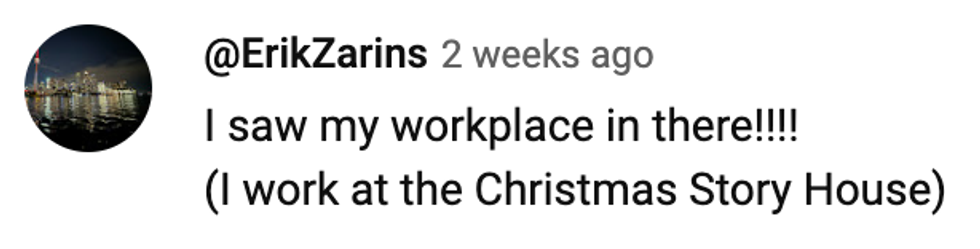 "My parents were watching the movie during the premiere and there's a scene where Kevin goes out into the backyard to cut himself a Christmas tree, so he cuts one in half."
