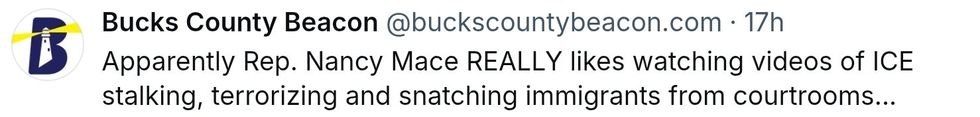 Perhaps jealousy of Noem drove Mace to switch up her transphobia messaging to the racism and xenophobia of the Trump administration's immigration policy, which almost exclusively targets Black and brown people, especially anyone suspected of being Latino.